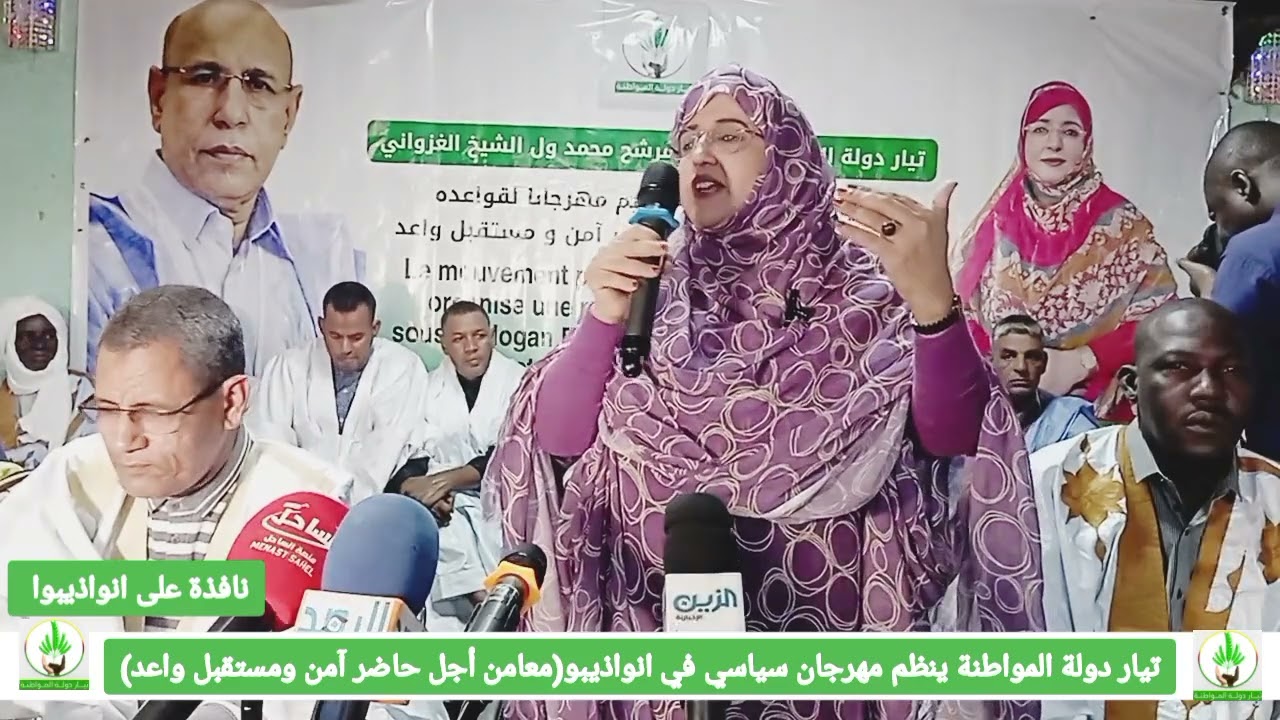 و اضافت بنت التقي، في كلمتها خلالها مهرجان نظمه تيارها، هذا المساء بنواذيبو، ان رئيس الجمهورية يسير بخطى واضحة المعالم لوضع البلد على السكة الصحيحة و التغيير الإيحابي من واقع المواطنين.
