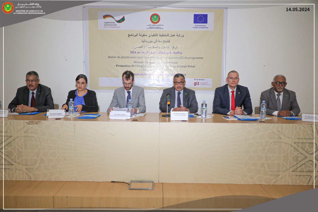 أشرف الأمين العام لوزارة التشغيل والتكوين المهني، السيد محمد سالم ولد بوخريص، اليوم الثلاثاء 14 مايو 2024، على إطلاق ورشة التخطيط التشغيلي لمكون GIZ لبرنامج “ننجح معا في موريتانيا” الممول من قبل الاتحاد الأوروبي.
