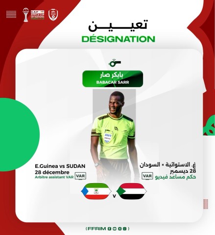 بابكر صار يتولى إدارة الـVAR بمباراة غينيا الاستوائية والسودان