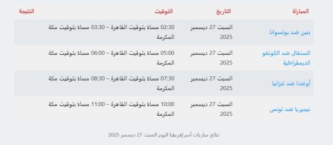 نتائج مباريات أمم إفريقيا اليوم السبت 27 ديسمبر 2025