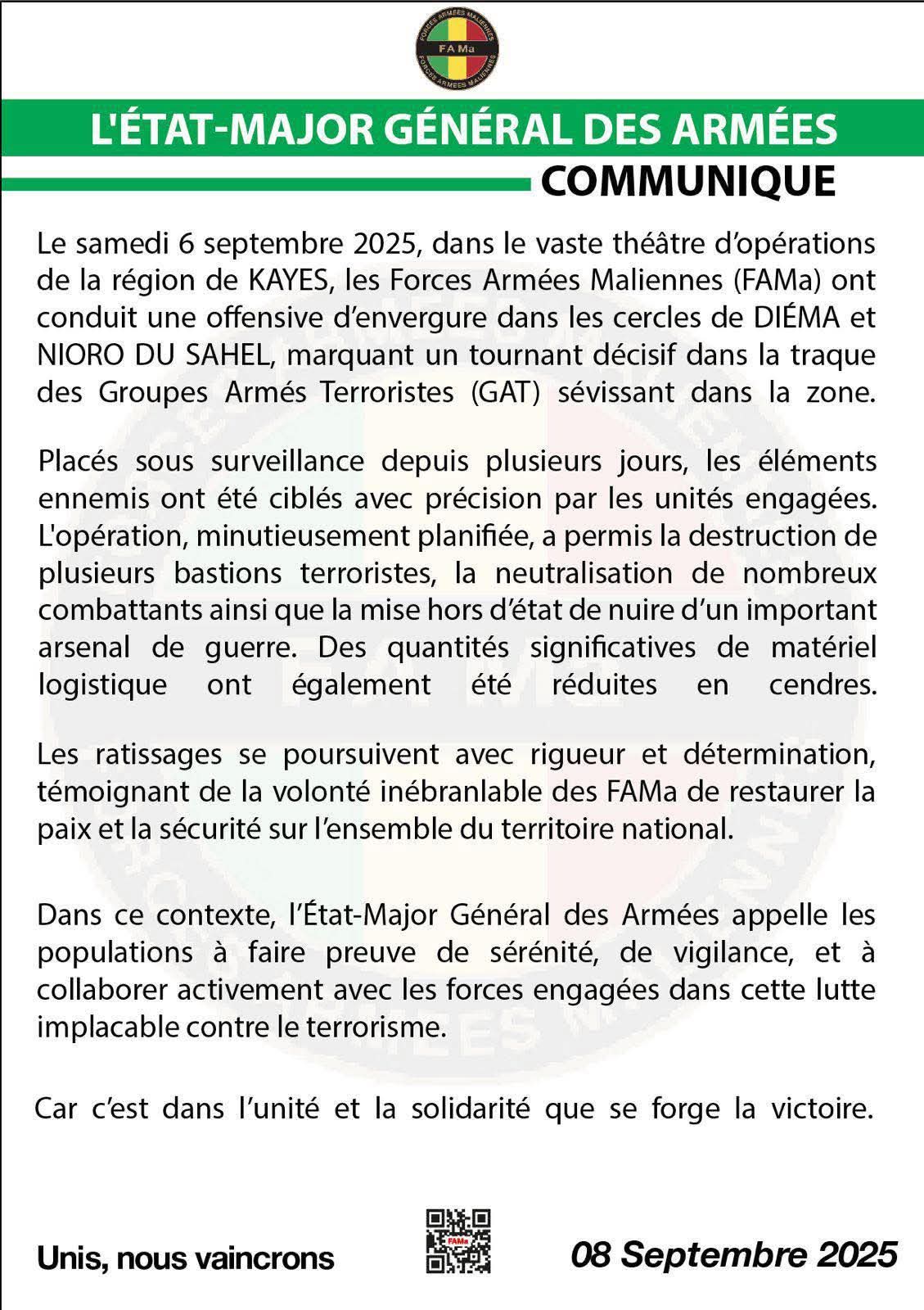 ووفق بيان صادر عن الجيش المالي؛ جاءت العملية بعد معلومات دقيقة وفرتها أجهزة الاستخبارات المختصة، وأسفرت عن ضبط عدة دراجات نارية وحوالي عشرين هاتفاً محمولاً.