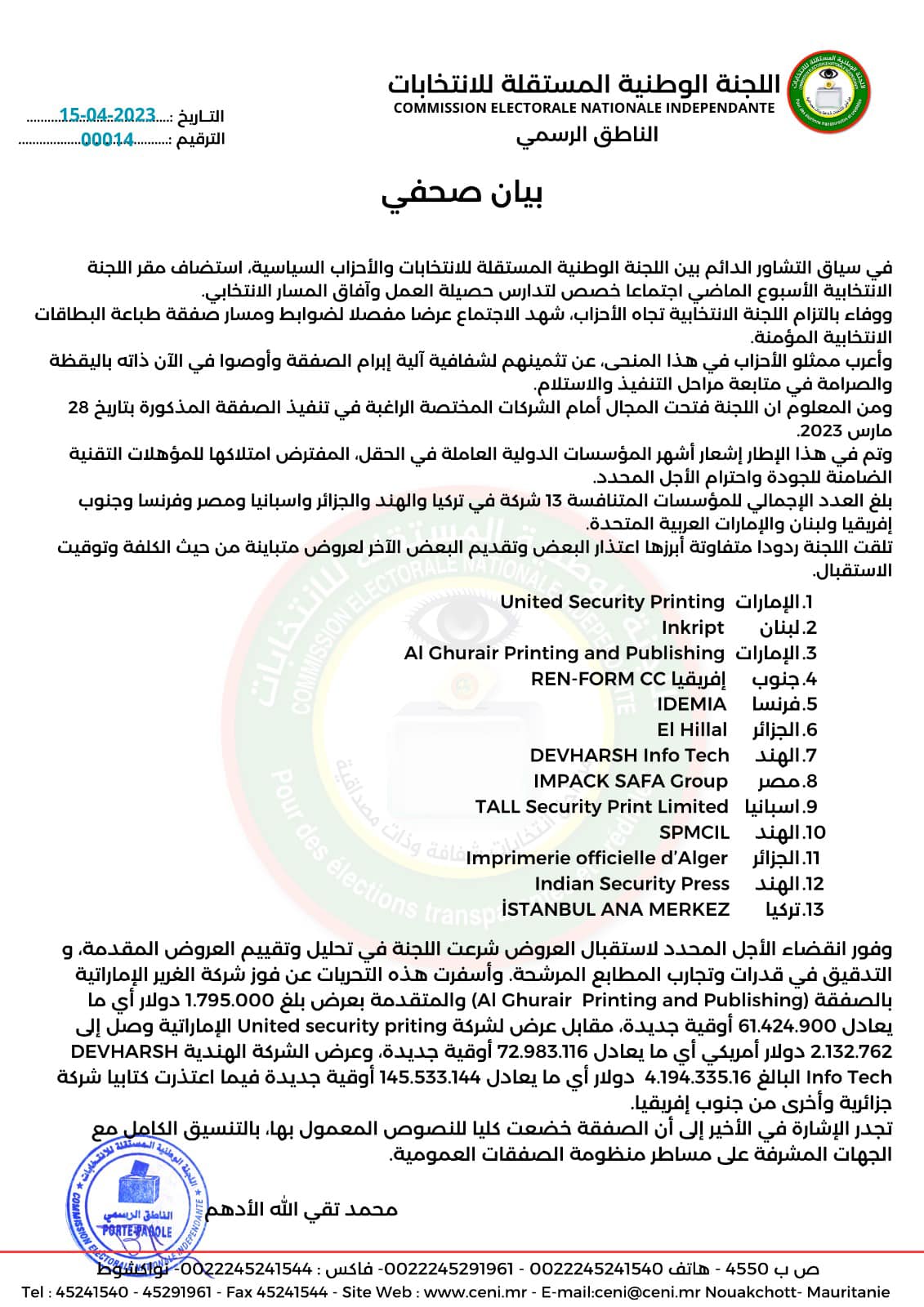 أشرف وزير الصحة السيد المختار ولد داهي، أمس من المركز الصحي بتيارت، على انطلاق إدراج الجرعة الثانية من لقاح الحصبة و الحصبة الالمانية (RR2) ضمن مكونات البرنامج الموسع للتلقيح لصالح الأطفال عند 15 شهرا على امتداد التراب الوطني.
