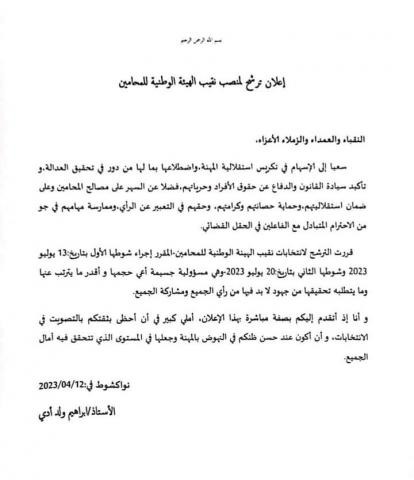 سعيا مني للنهوض بهيئتنا والسعي الجاد للحصول علي المكاسب التي تستحق الهيئة ، والدفاع عن المصالح المادية والمعنوية لمنتسبي الهيئة والحفاظ علي أستقلاليتها ، قررت أعتمادا على الله أولا وعليكم الترشح لمنصب النقيب في الانتخابات التي ستجرى في يوليو القادم.