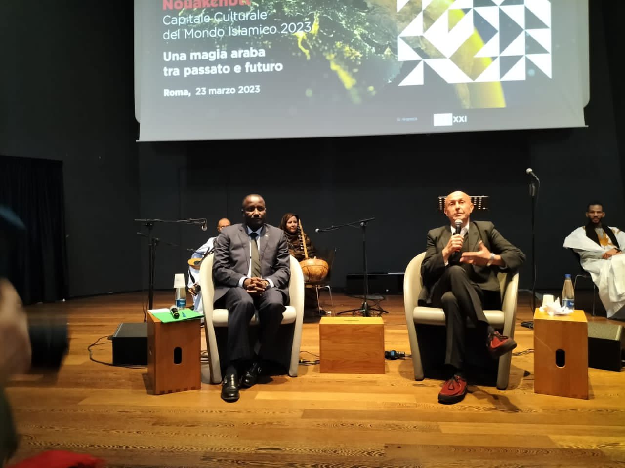 خطاب معالي وزير الثقافة والشباب والرياضة والعلاقات مع البرلمان بمناسبة ضمن مبادرة “نواكشوط العاصمة الثقافية للعالم الإسلامي 2023.. سحر عربي بين الماضي والمستقبل” والذي نظمته مؤسسة ميد أور في متحف ماكسي بروما بالتعاون مع وزارة الثقافة الموريتانية والسفارة الموريتانية في إيطاليا.