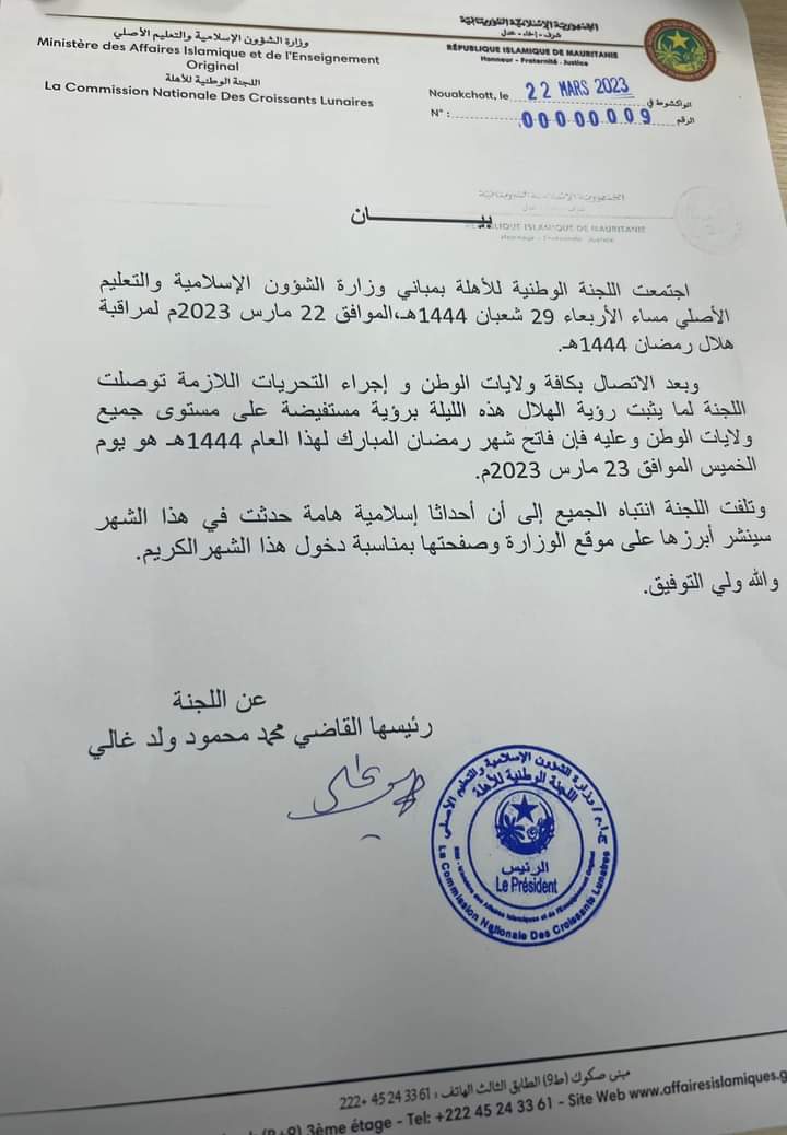 اللجنة الوطنية للأهلة تعلن ثبوت شهر رمضان برؤية مستفيضة في جميع ولايات الوطن.