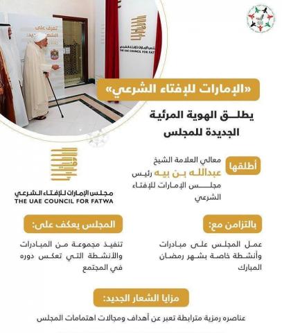 أشرف العلامة الشيخ عبدالله بن بيه؛ رئيس مجلس الإمارات للإفتاء الشرعي، اليوم (الثلاثاء) في ابوظبي، على إطلاق الهوية المرئية الجديدة للمجلس؛ في حفل حضره الدكتور عمر حبتور الدرعي مدير عام المجلس، وبمشتاركة أعضاء الهيئة، ولفيف من مسؤولي الإدارات و الموظفين.