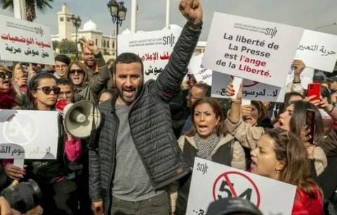 الصحفيون في تونس يحتجون ضد إجراءات الرئيس سعيِّد