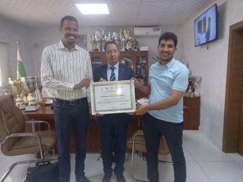 تم تسليم الشهادة للعمدة في مكتبه وبحضور نائب رئيس الشركة الموريتانية لأخصائي الكلي.
