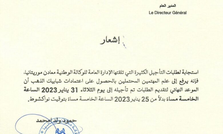 وسيخلف في هذا المنصب ماحي ولد حامد الذي عين قبل ثلاثة أسابيع في منصب والي داخلت نواذيبو.