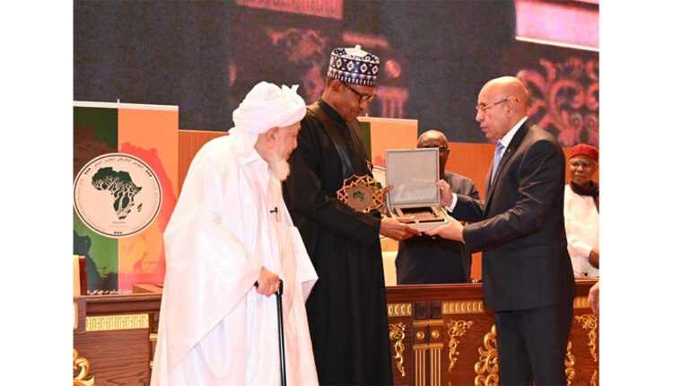 قدم الرئيس محمد ولد الشيخ الغزواني، اليوم الثلاثاء، جائزة تعزيز السلم في إفريقيا في نسختها الأولى 2023، لنظيره النيجيري محمدو بخاري.