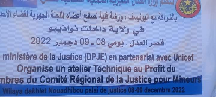 تتواصل بمدينة نواذيب لليوم الثاني على التوالي الورشة الفنية المنظمة من طرف إدارة الحماية القضائية للأطفال ب وزارة العدل الموريتانية - Ministère de la Justice لصالح الفاعلين في قضاء الاحداث بداخلت نواذيب.