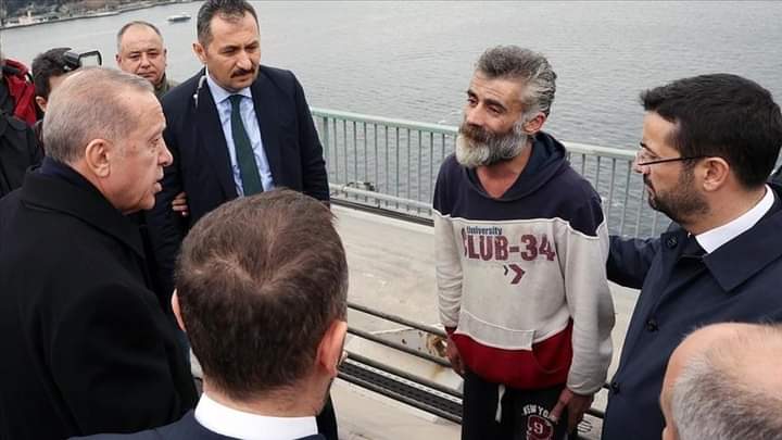 أقنع الرئيس أردوغان مواطنا كان يهم بالانتحار عبر إلقاء نفسه، وهذه المرة من فوق "جسر شهداء 15 تموز" في إسطنبول.