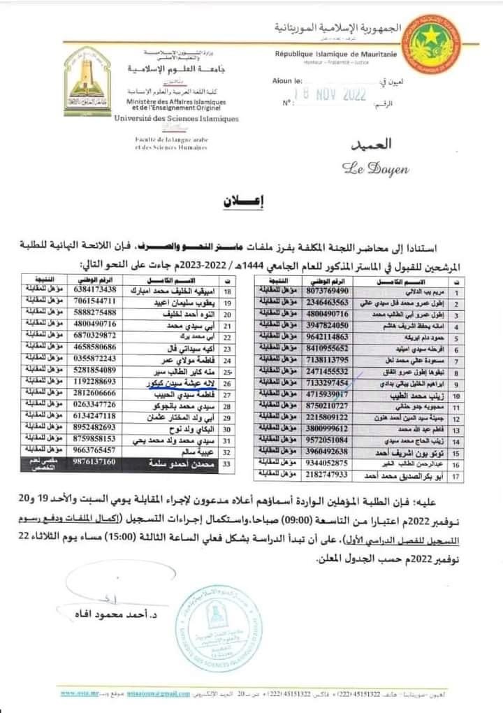 جامعة لعيون : لائحة الطلبة المرشحين للقبول فى الماستر (أسماء)