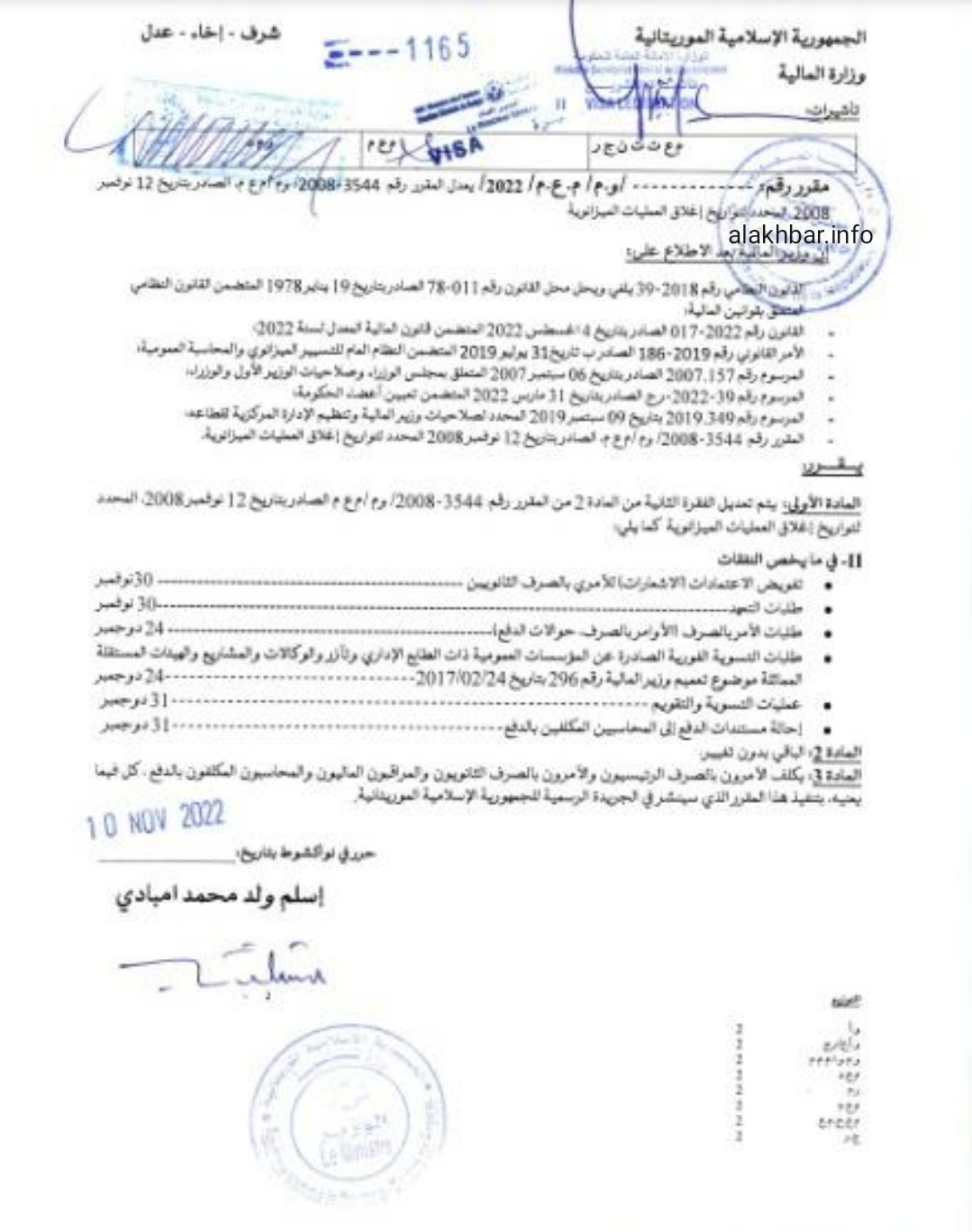 اجتمع مجلس الوزراء يوم الخميس 10 نوفمبر 2022 تحت رئاسة صاحب الفخامة السيد محمد ولد الشيخ الغزواني، رئيس الجمهورية.