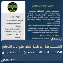 الشرطة الوطنية تعلن فتح باب الترشح لاكتتاب مهندسين متخصصين (إعلان)