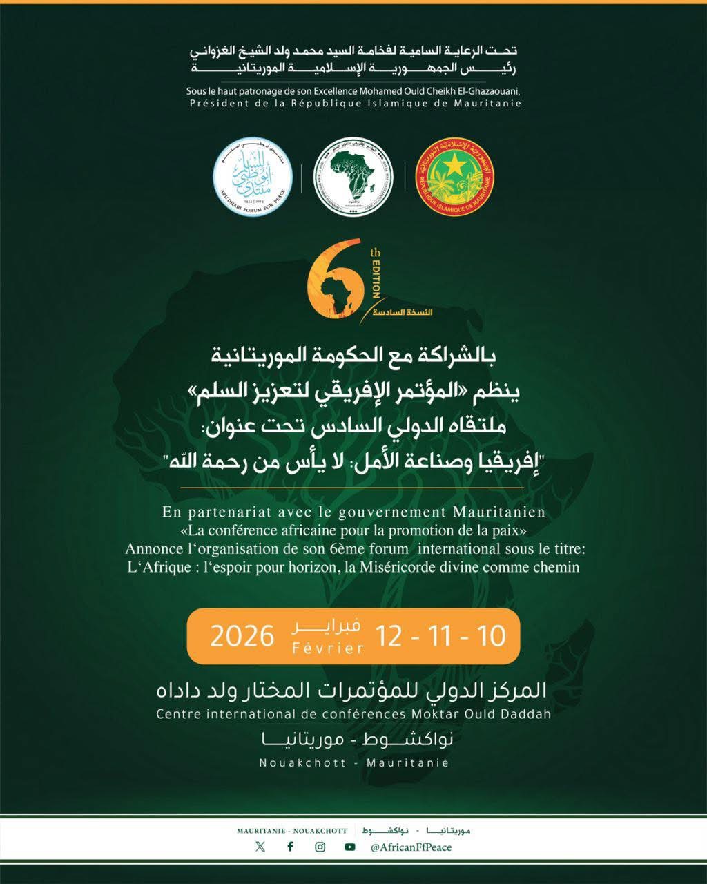 أعربت سفارة الولايات المتحدة الأمريكية في نواكشوط عن تهانيها للعلامة عبدالله بن بيه، بمناسبة فوزه بجائزة صُنّاع السلام لسنة 2026، التي تمنحها شبكة الجيران متعددي الأديان، وهي منظمة دولية مقرّها الولايات المتحدة الأمريكية.