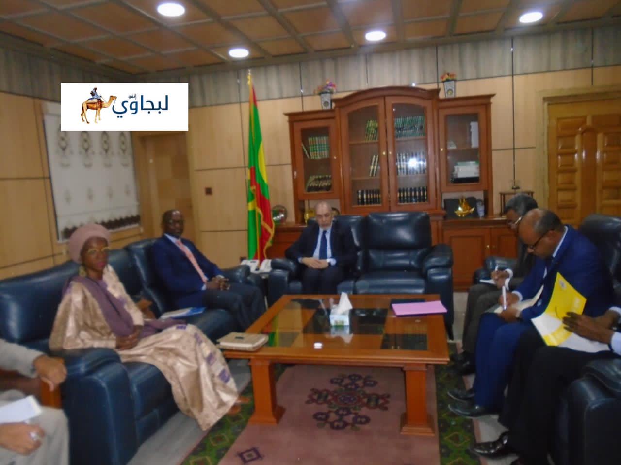 وحضر اللقاء كل من: الأمين العام لوزارة العدل السيد محمد أحمد عيده والمستشاران الفنيان اعمر ولد القاسم وآبو مودى جالو.