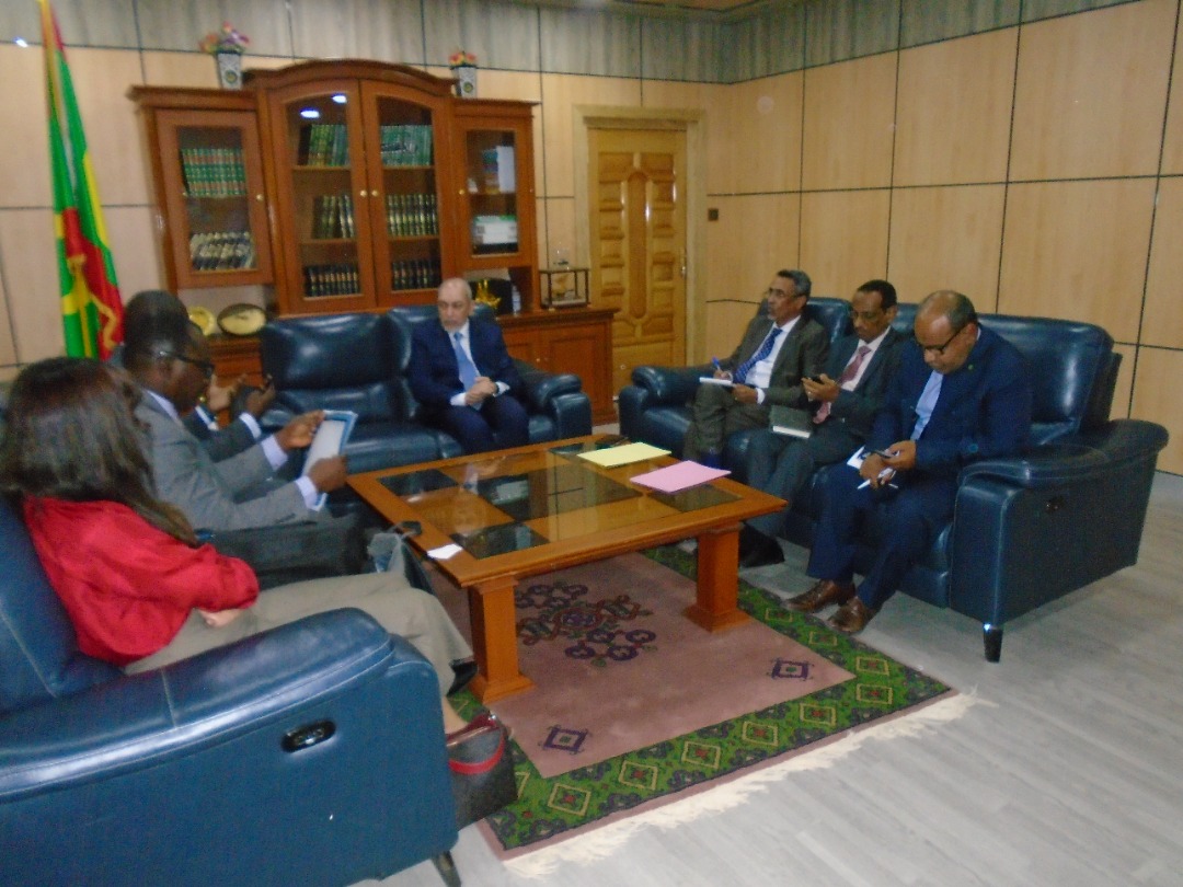استقبل وزير العدل السيد محمد محمود ولد الشيخ عبد الله بن بيه في مكتبه بالوزارة اليوم الخميس بعثة من البنك الدولي برئاسة السيد فليكس اوبونك.