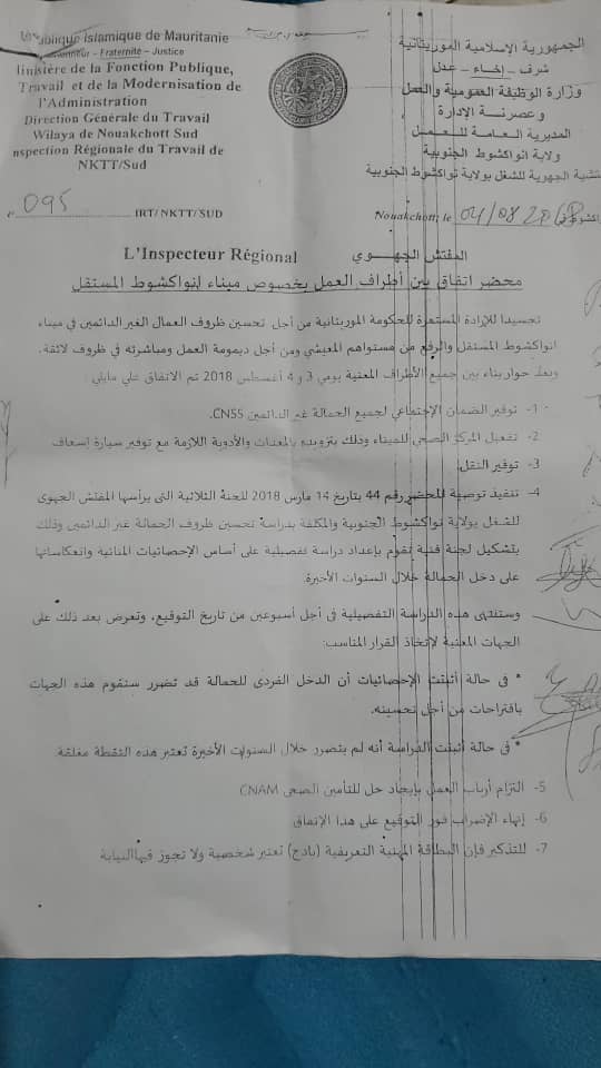 “كما أنه في يوم تدشين توسعة الميناء، قال وزير التشغيل، إنه تم الاعتماد على 2506 عامل لمزاولة العمل المينائي، وذلك بحضور مدير الميناء، وأمام الرأي العام، وهو ما يعزز إلزامية الإدارة بتطبيق قرارها”، حسب كاو.