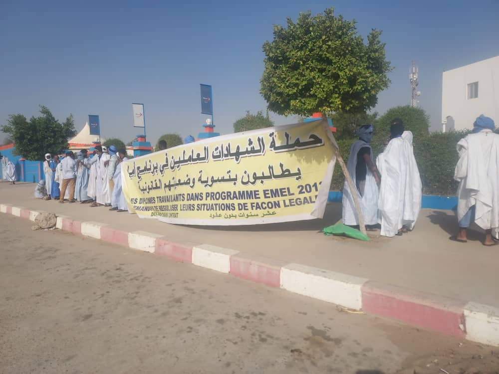 نظم  العشرات من حملة الشهادات العاملين في برنامج امل وقفة احتجاجية صباح اليوم أمام مبنى الوزارة الأولى مطالبين بتسوية وضعيتهم القانونية .