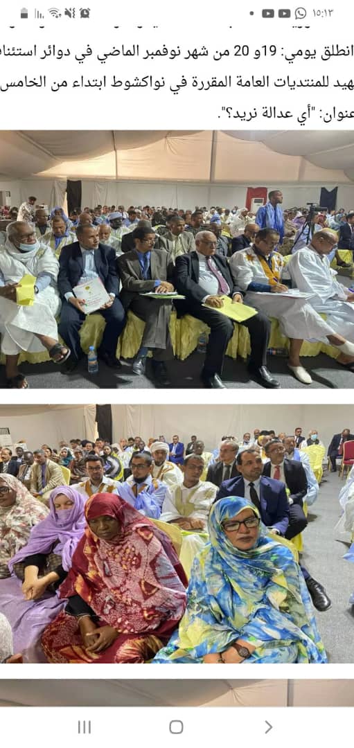 انطلقت اليوم السبت 03-1-2022 بنواكشوط فعاليات اللقاءات الجهوية للتشاور حول العدالة الخاصة بالمحكمة العليا ودائرة استئناف نواكشوط.