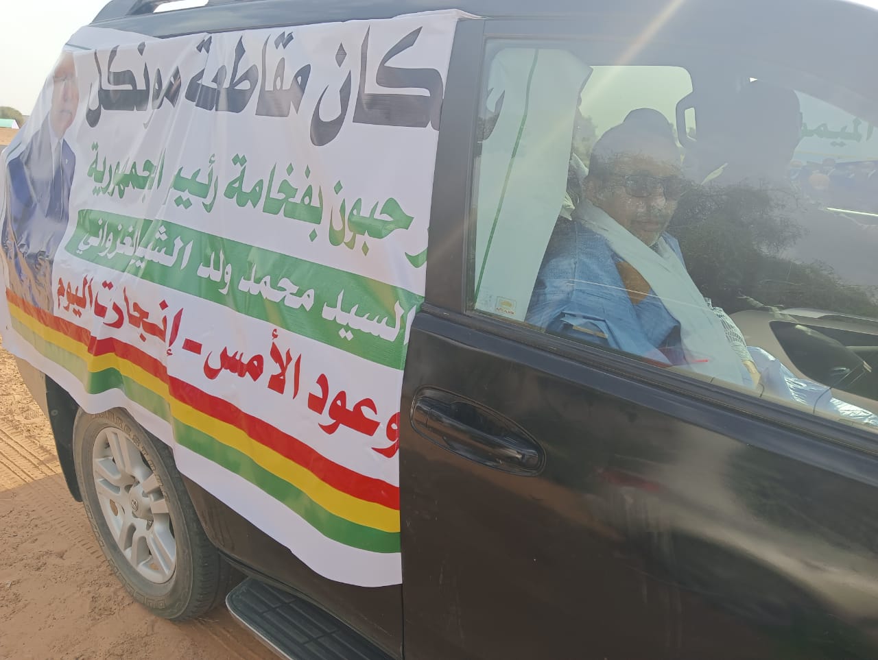 وحملت جموع المستقبلين اللافتات الكبيرة المُعبرة عن التثمين والامتنان لما تحقق من إنجازات مشهودة خلال السنوات الثلاثة الماضية من حكم الرئيس محمد ولد الشيخ الغزواني خصوصا في مجال التنمية ودعم الطبقات الأكثر هشاشة في المجتمع،