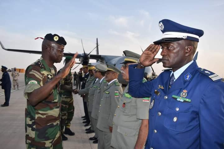 وكان إلى جانب قائد الأركان العامة للجيوش في استقبال الضيف السنغالي اللواء البحري محمد شيخنا الطالب مصطف قائد الأركان البحرية و عدد من قادة الفرق و المديريات بالأركان العامة للجيوش.