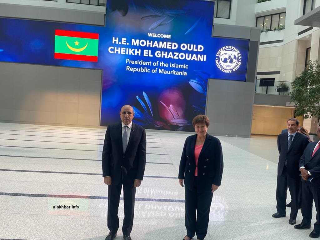 وعقد الرئيس غزواني اليوم اجتماعا مع المديرة العامة لصندوق النقد الدولي كريستالينا غورغييفا ومسؤولين من الصندوق النقد الدولي في مقر المؤسسة الدولية.