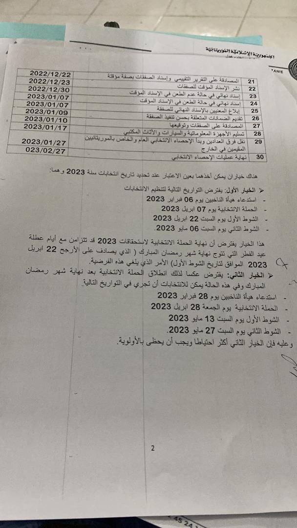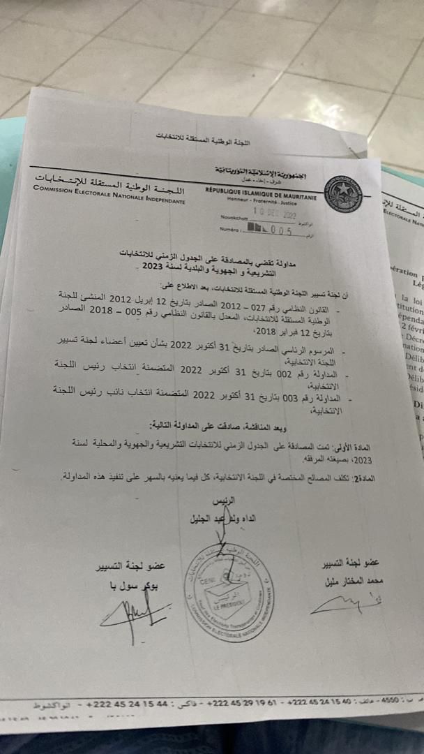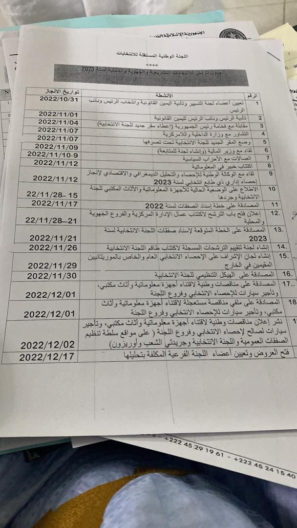 صادقت اللجنة المستقلة للانتخابات على الجدول الزمني للانتخابات التشريعية والجهوية والمحلية حيث تم تحديد استدعاء الناخبين بيوم 6 فبراير 2023 و افتتاح الحملة الانتخابية بيوم 7 ابريل2023 أما الشوط الأول من الانتخابات فتم تحديد موعده بيوم 22 ابريل 2023 في حين حُدّد الشوط الثاني بيوم 6 مايو 2023.