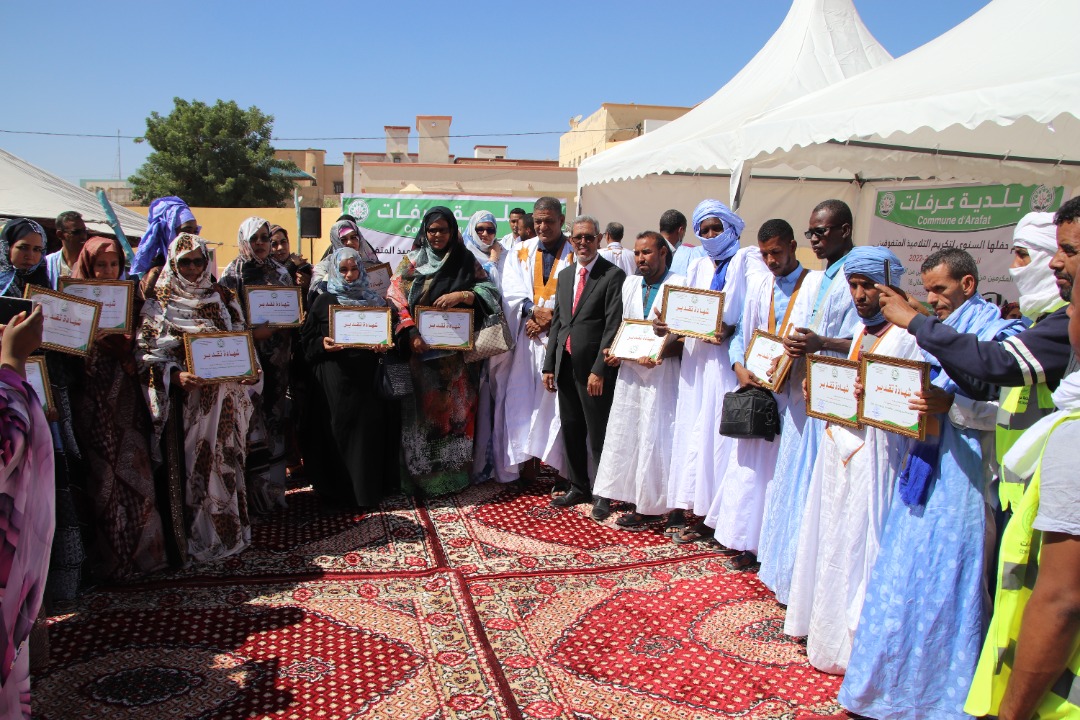 وحضر الحفل جمع غفير من المدعوين في مقدمتهم المفتش العام لوزارة التهذيب الوطني وإصلاح النظام التعليمي السيد الناجي سعيد، إضافة إلى والي ولاية نواكشوط الجنوبية السيد انيانغ جبريل حمادي وحاكم مقاطعة عرفات السيد محمد حرمة ولد محمد المختار، والمدير الجهوي المساعد للتهذيب الوطني وإصلاح النظام التعليمي بنواكشوط الجنوبية السيد احمد ولد الكيحل، ومفتش التعليم الأساسي في المقاطعة السيد ديديا محمد ديديا وعدد من الأطر والمنتخبين وممثلوا منظمات المجتمع المدني، والأمين العام لبلدية عرفات السيد أحمد جدو ولد محمد محمود ولد الطالب أحمد.