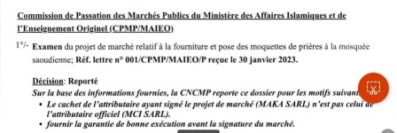 لجنة الصفقات تعترض على صفقة تفريش الجامع المعروف محليا بالمسجد السعودى ، يواجعة وزارة الشؤون الإسلامية يبدونها صفقاتها مشبوها يالل ينفتحوله لكتوب ،