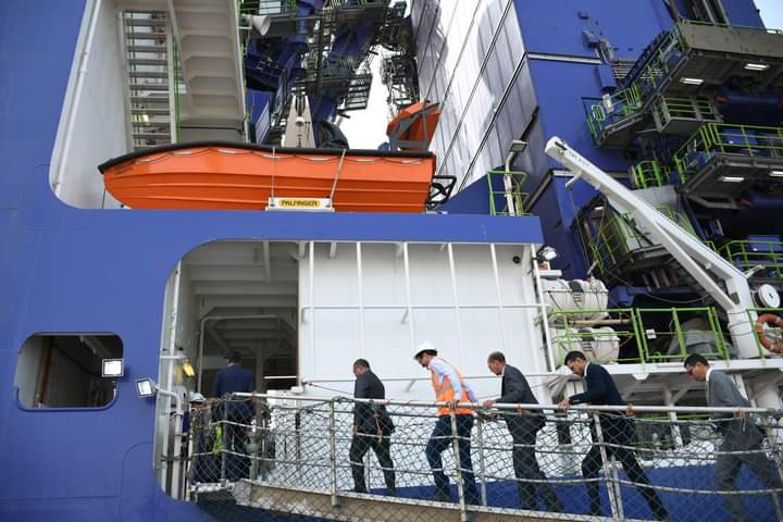 وزير البترول والمعادن يؤدي زيارة لسفينة" آمازون"التى وصلت ميناء العاصمة فى طريقها لحقل احميم الكبير ..صور
