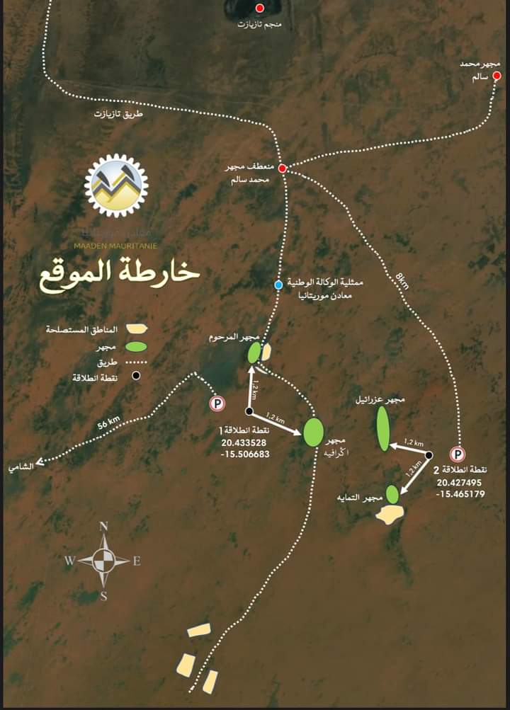 قدمت معادن موريتانيا خارطة إرشادية توضح مواقع تنفيذ خطة فتح منطقة التمايه المقرر يوم الثلاثاء 21 فبرارير الجاري على تمام الساعة العاشرة صباحا