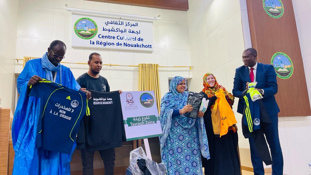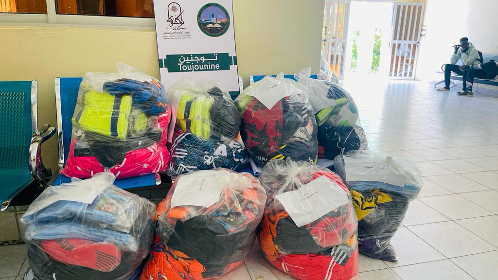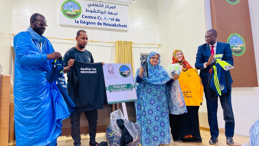 أشرفت رئيسة جهة نواكشوط السيدة فاطمة عبد المالك، زوال اليوم الخميس 02 مارس 2023، بالمركز الثقافي للجهة، على توزيع معدات رياضية على الفرق المشاركة في الدورة الأولى لكأس رئيسة جهة نواكشوط، والبالغ عددها 72 فريقا تمثل مقاطعات العاصمة التسع، والتي ستنطلق يوم غد الجمعة 03 مارس 2023، الساعة الرابعة مساء بملعب ملح بمقاطعة توجونين.