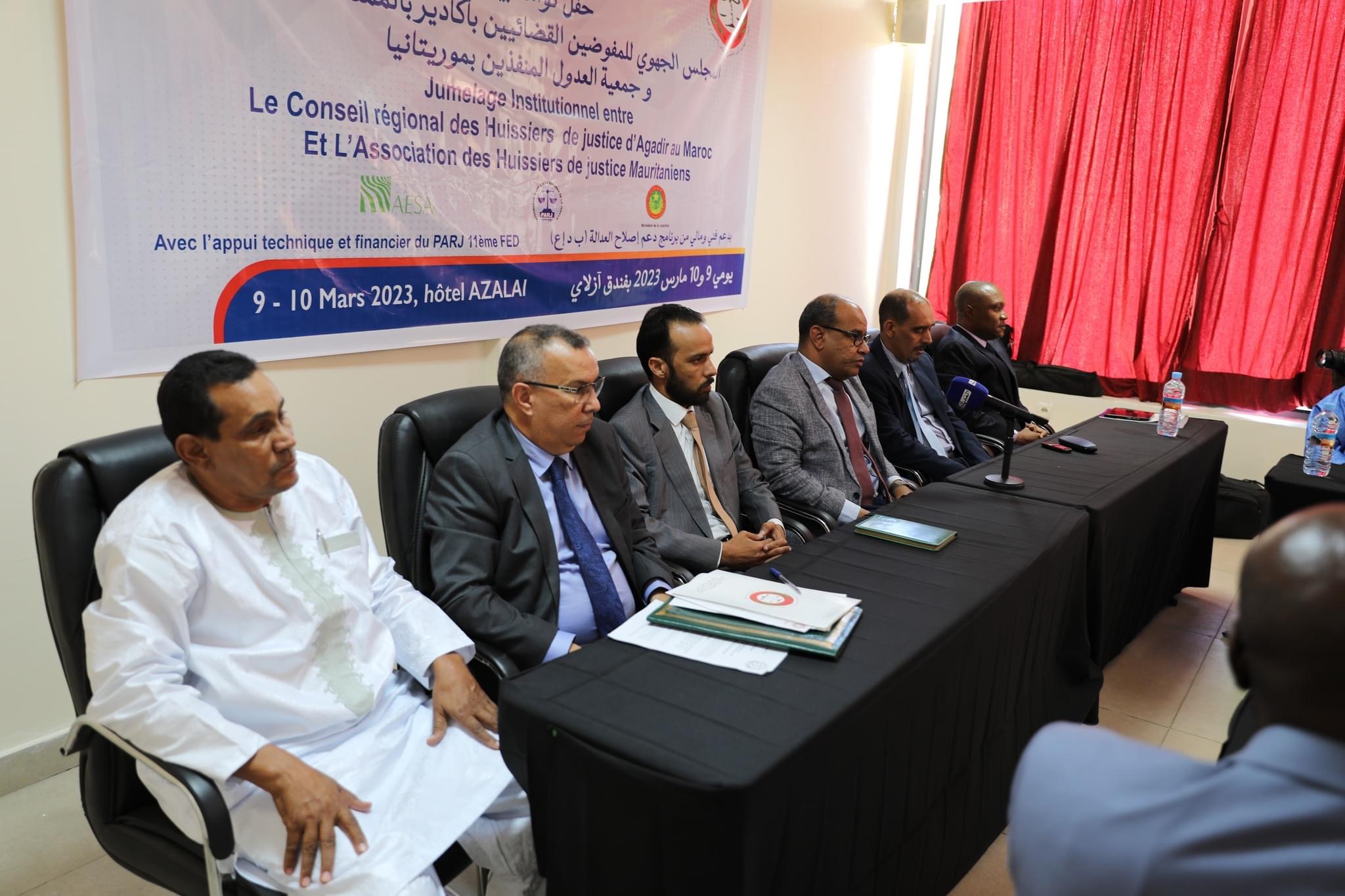 حفل توأمة بين جمعية العدول المنفذين في موريتانيا والمجلس الجهوي للمفوضين القضائيين بأكادير بالمملكة المغربية.