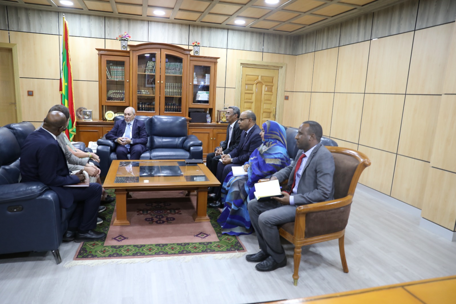 استقبل معالى وزير العدل محمد محمود ولد الشيخ عبدالله بن بيه في مكتبه صباح اليوم الإثنين السيدة دوناتيلا فرجاري رئيسة منظمة أرض الرجال الإيطالية رفقة السيد أبيير روترليي مندوب المنظمة في بلادنا.