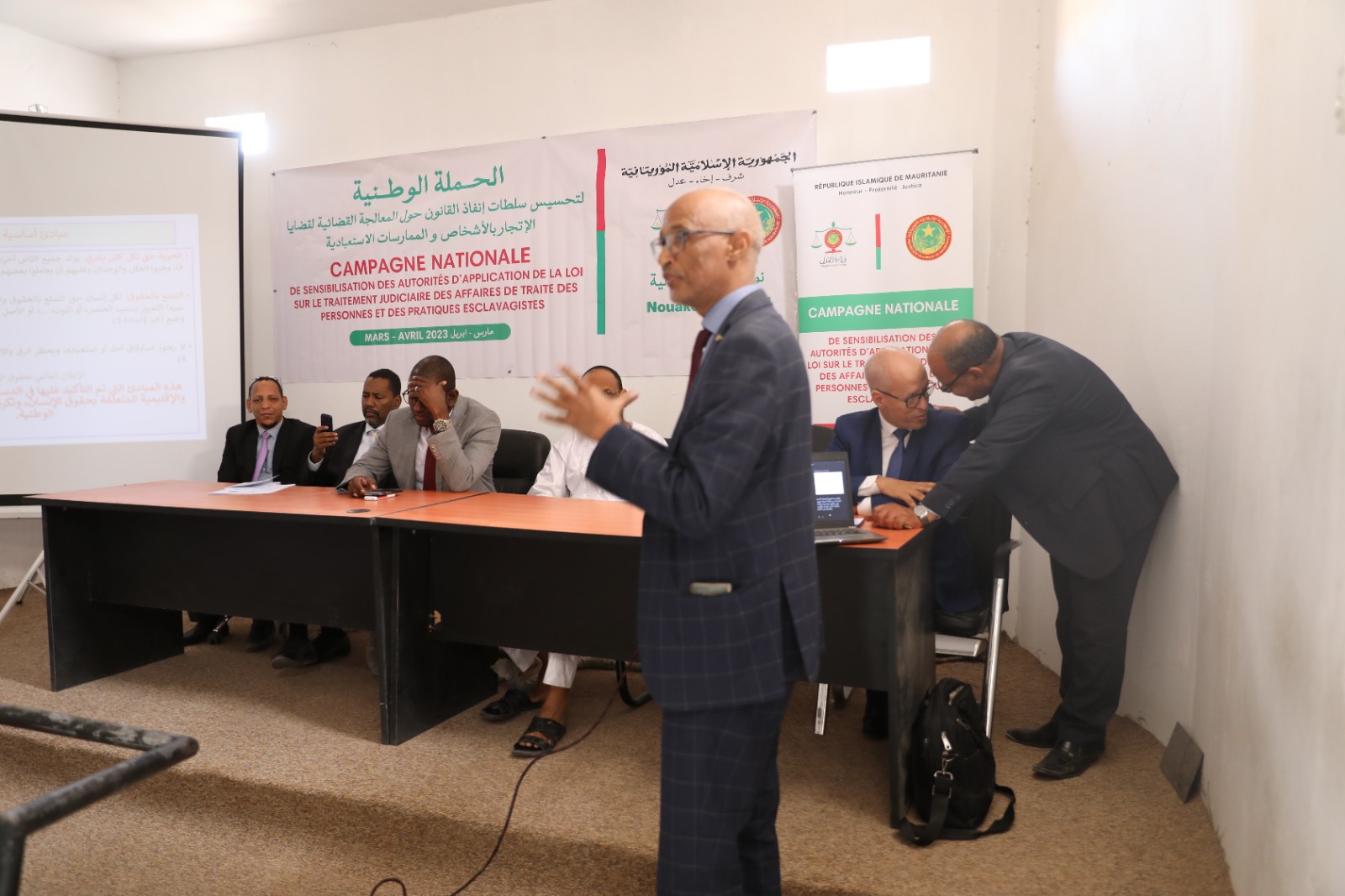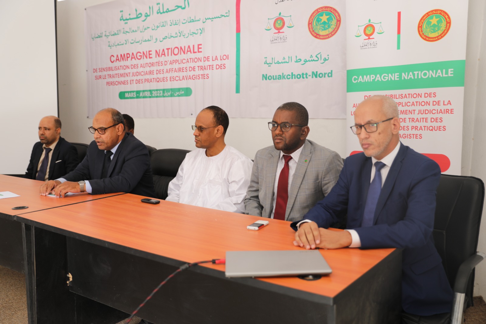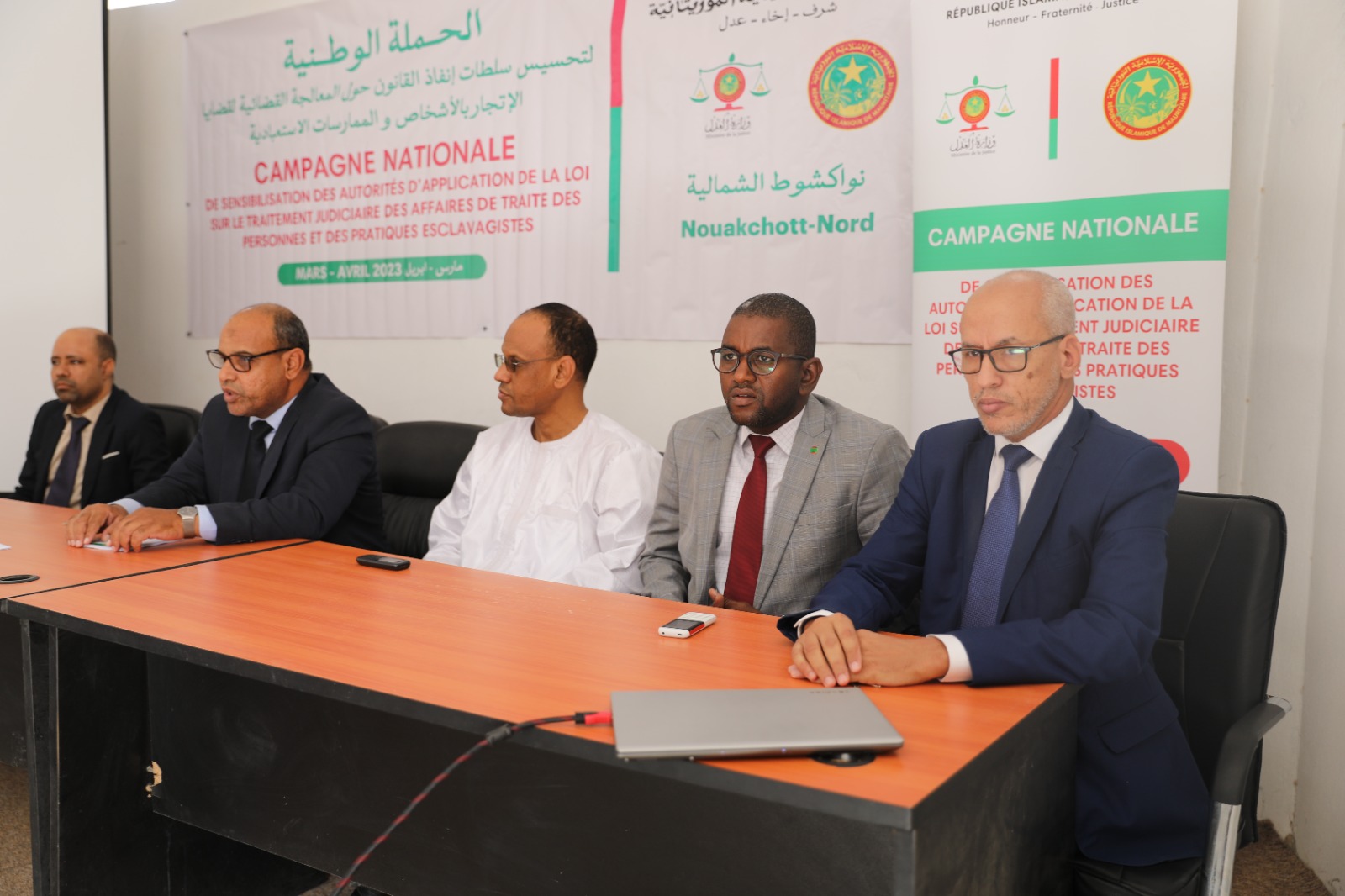 احتضن قصر العدل بولاية انواكشوط الشمالية اليوم الجمعة 07 إبريل 2023 فعاليات المرحلة الثالثة من الحملة التحسيسيية التي تنفذها وزارة العدل لصالح سلطات إنفاذ القانون حول المعالجة القضائية لقضايا الاتجار بالأشخاص والممارسات الاستعبادية.
