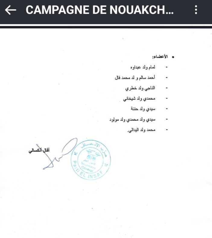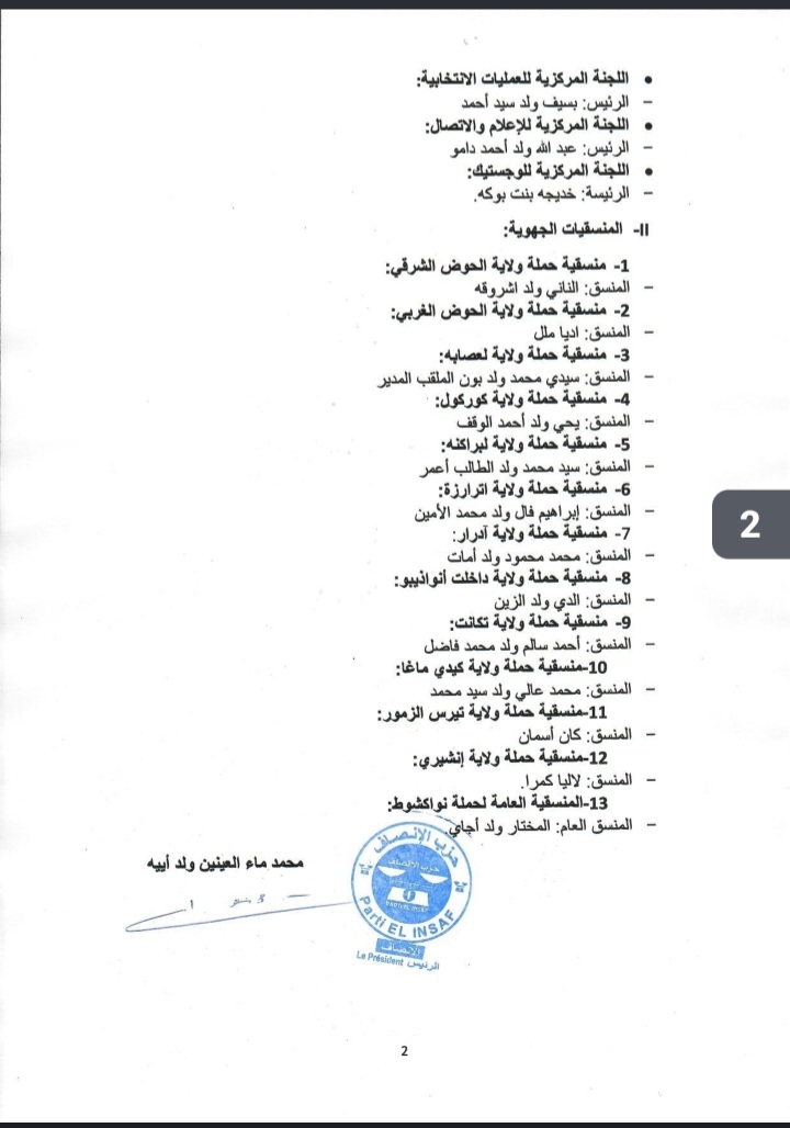 - مرشحو الحزب لنواب ولايات انواكشوط .