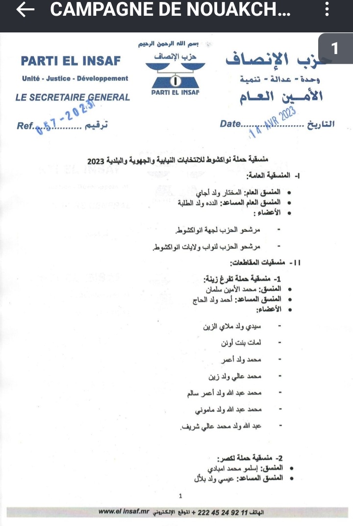 منسقية حملة نواكشوط للانتخابات النيابية والجهوية والبلدية 2023