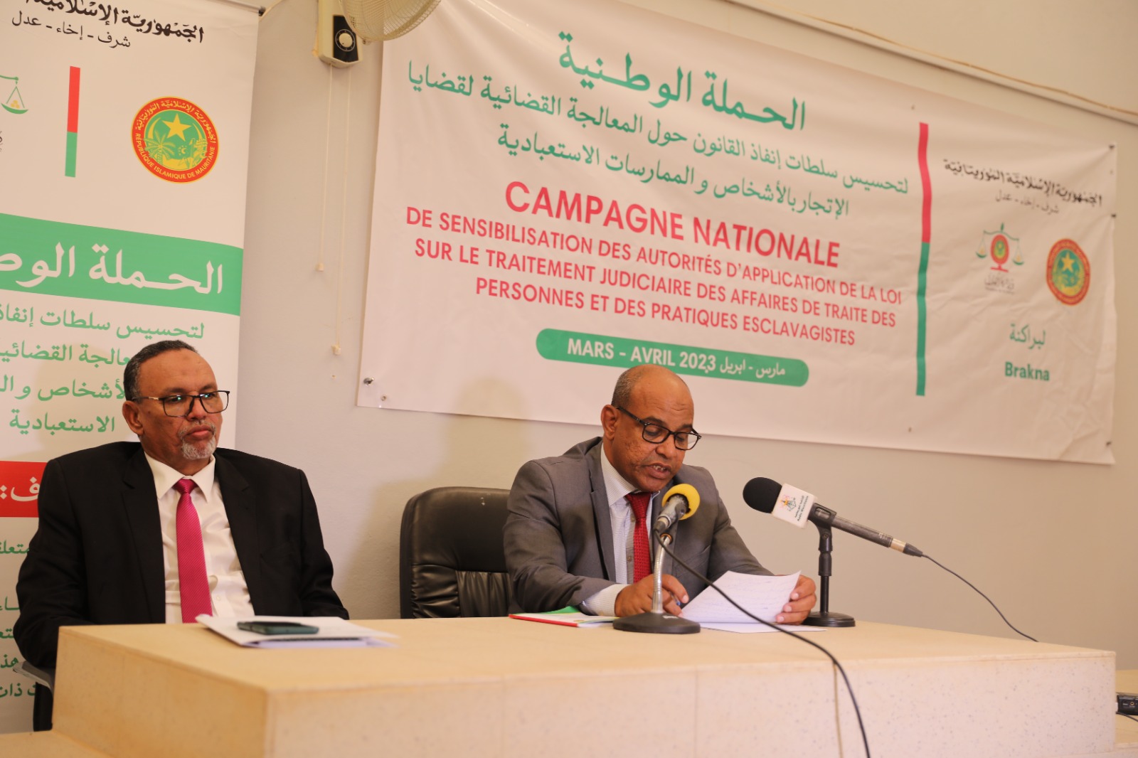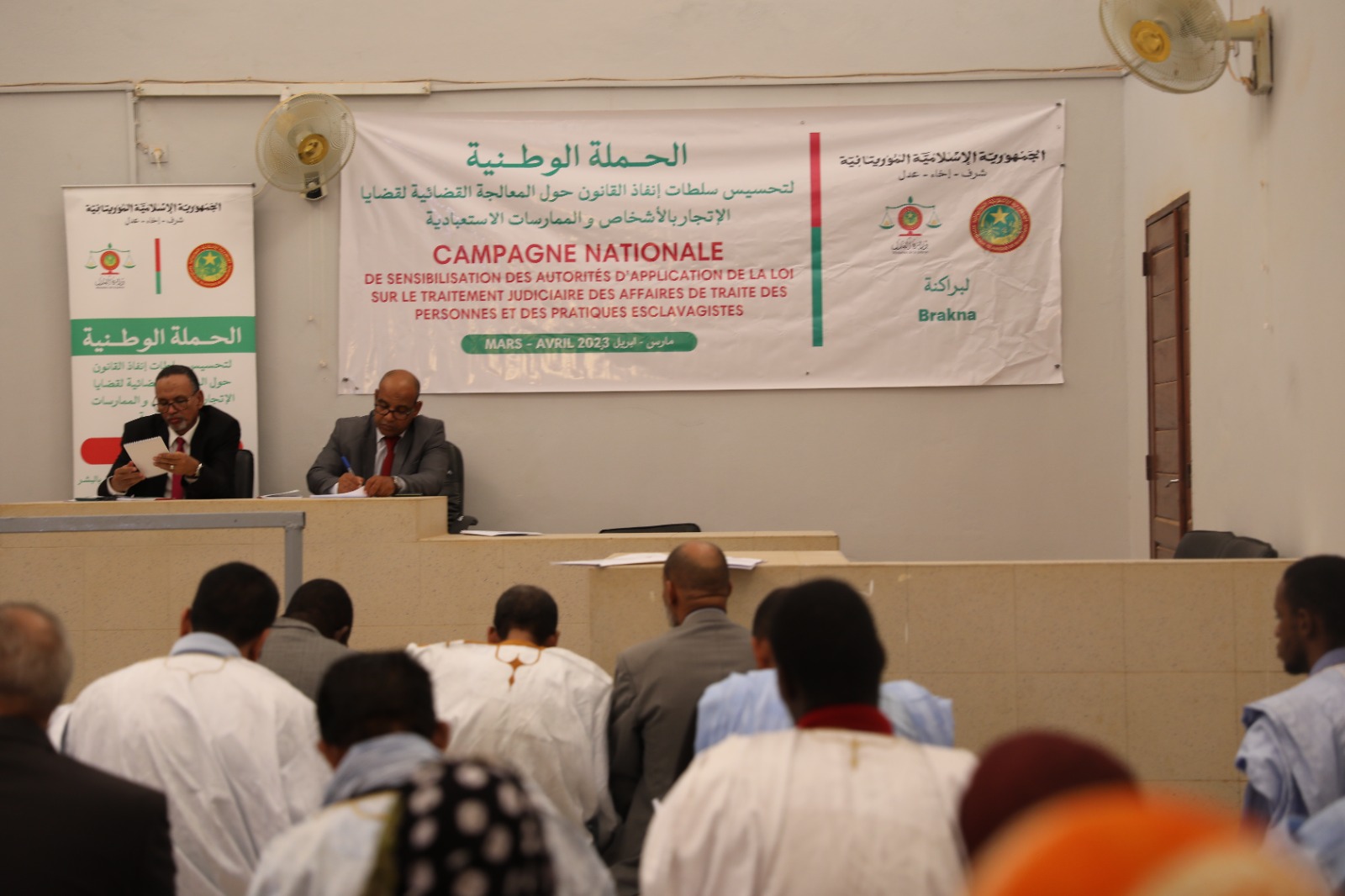حطَت بعثة وزارة العدل المكلفة بالحملة التحسيسية لصالح سلطات إنفاذ القانون حول المعالجة القضائية لقضايا الاتجار بالأشخاص والممارسات الاستعبادية اليوم الثلاثاء 18 إبريل 2023 بألاك عاصمة ولاية لبراكنه.