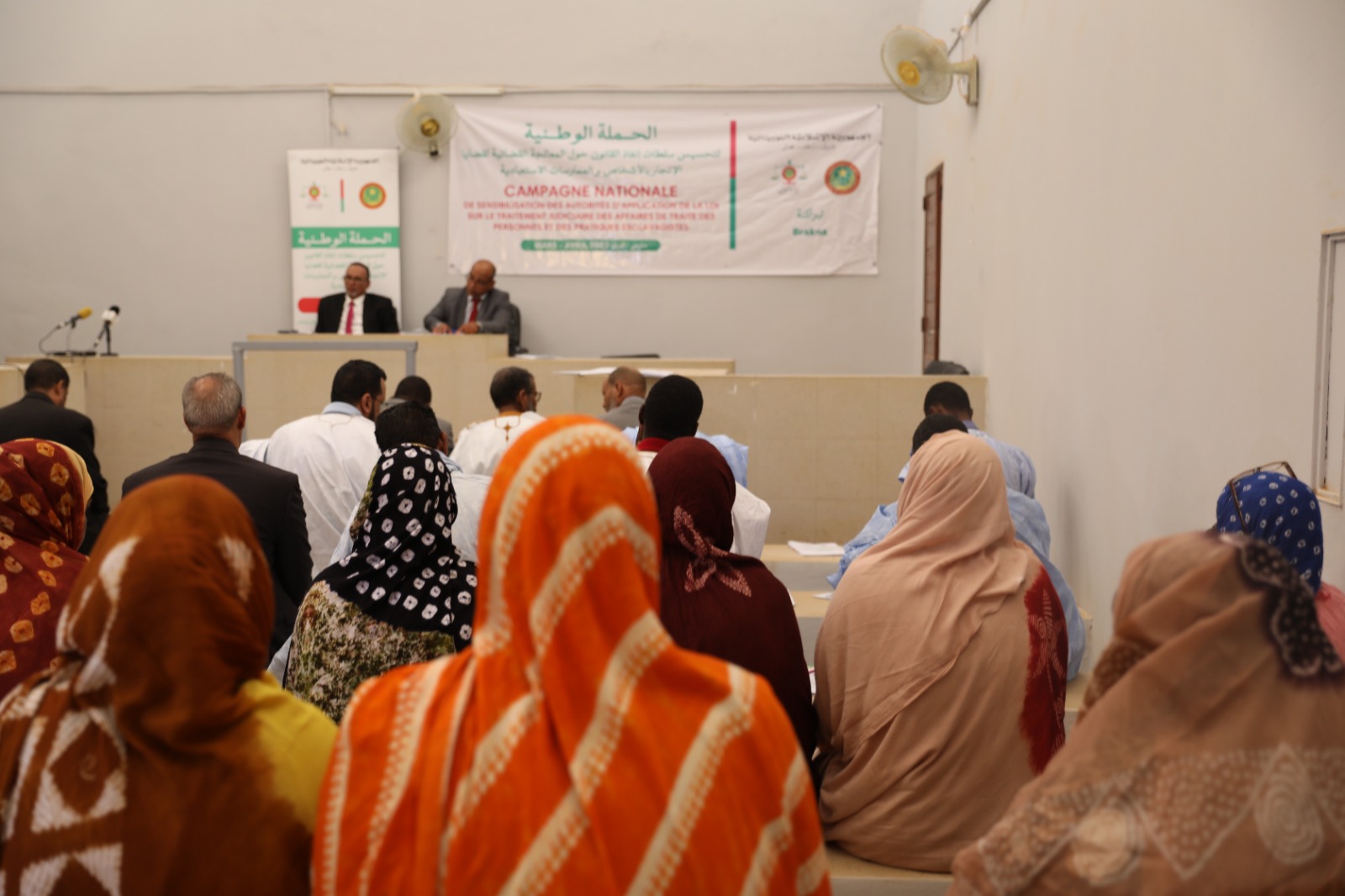ويشتمل برنامج عمل البعثة في هذه المرحلة؛ عرض ومناقشة القانونين المتعلقين: بمنع ومعاقبة الاتجار بالأشخاص وحماية الضحايا، والقانون رقم 31/2015 الصادر بتاريخ 10 سبتمبر 2015 المجرم للعبودية والممارسات الاستعبادية مع المعنيين بإنفاذ القانون على مستوى ولاية لبراكنه من قضاة وضباط شرطة قضائية..