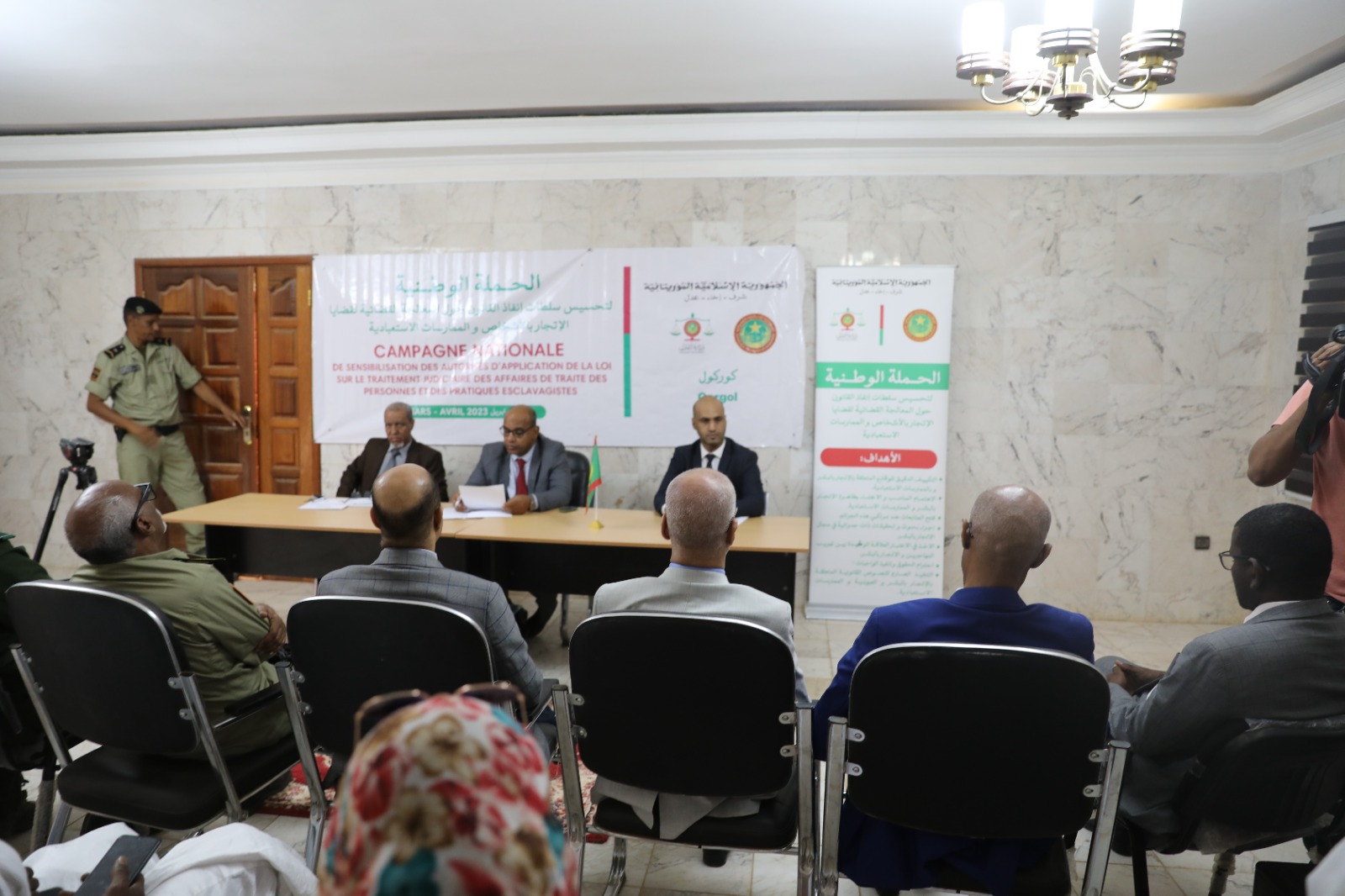 وتضمنت هذه المرحلة عرض ومناقشة القانونين: 017/2015 المتعلق بمنع ومعاقبة الاتجار بالأشخاص وحماية الضحايا، المعالجة القضائية لهذه الممارسات، والقانون رقم 31/2015 الصادر بتاريخ 10 سبتمبر 2015 المجرم للعبودية والممارسات الاستعبادية مع القضاة وكتاب الضبط وضباط الشرطة القضائية في ولايات لبراكنه وتكانت وكوركول.