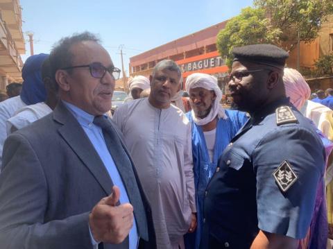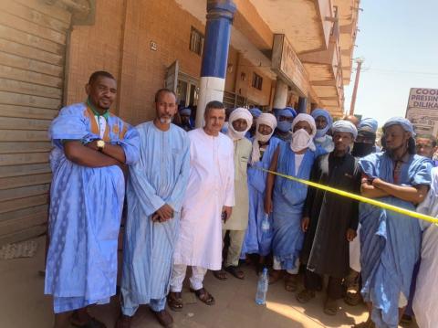 وقد انتقل وفد من السفارة الموريتانية في باماكو إلى المكان برئاسة السفير أحمدو ولد أحمدو والمستشار الأول بالسفارة الشيخ التراد ولد الشيخ الحسين وعضو المكتب التنفيذي للجالية غظفي ولد سيد المختار نائب رئيس الجالية وعضو المكتب التنفيذي محمد ولد الطالب حيدره وعضو المكتب التنفيذي أبي ولد جدو والأمين العام للجالية محمد الامين ولد القاسم وعضو المكتب التنفيذي باباه ولد شيخنا.