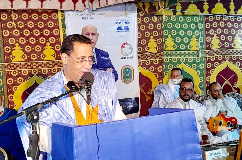وتعاقب على المنصة كل من مرشح الائحة الوطنية للحزب محمد مكت ومرشحة جهة انواكشوط فاطمة بنت عبد المالك،