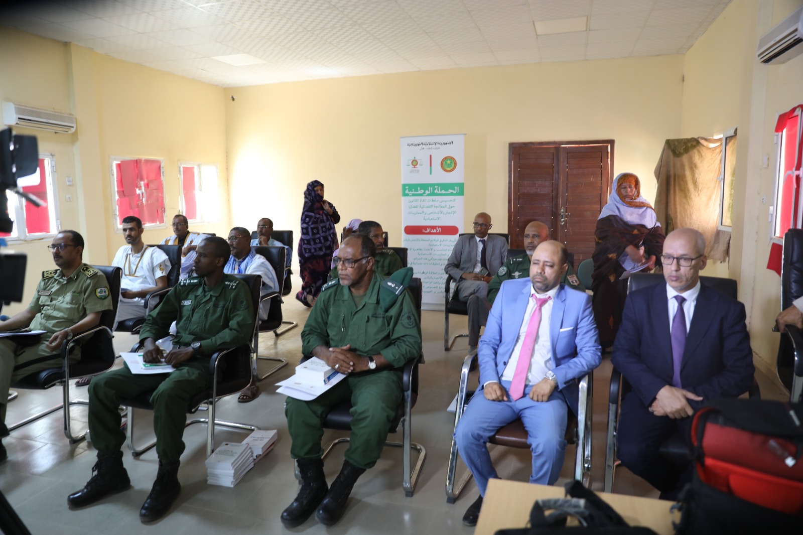 بدأت بعثة وزارة العدل المكلفة بالحملة التحسيسية لصالح سلطات إنفاذ القانون حول المعالجة القضائية لقضايا الاتجار بالأشخاص والممارسات الاستعبادية اليوم الخميس04- 05-2023 من مدينة لعيون عاصمة ولاية الحوض الغربي فعاليات حملتها مع المعنيين من قضاة وكتاب ضبط وضباط شرطة قضائية في الولاية.