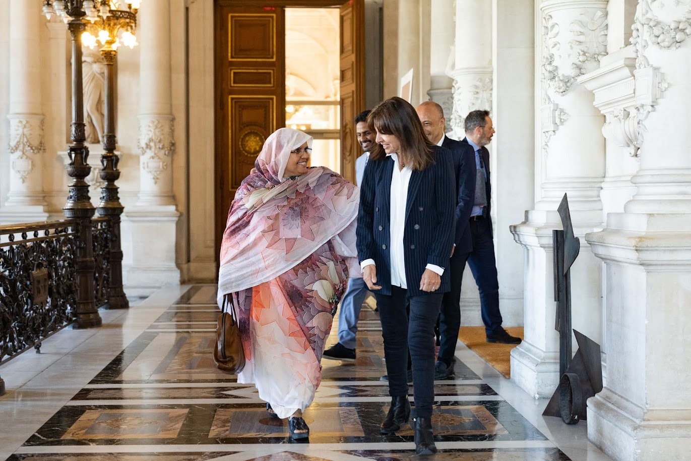 أستقبلت السيدة فاطمة عبد المالك رئيسة جهة نواكشوط، زوال أمس الجمعة 26 مايو 2023 بالمقر المركزي لبلدية باريس، من طرف عمدة باريس السيدة إن هيدالگو "ANNE HIADLGO"، حيث قدمت لها السيدة الرئيسة دعوة رسمية لزيارة نواكشوط، كما تناول الطرفان مختلف ملفات التعاون ذات الأولوية بالنسبة لساكنة نواكشوط، وخاصة في مجالات المياه والزراعة الحضرية والصحة والتكوين المهني، إضافة للتهيئة الحضرية، وسبل تطوير الشراكة بينهما لتحقيق برنامج المأمورية الجديدة للمجلس الجهوي لنواكشوط.