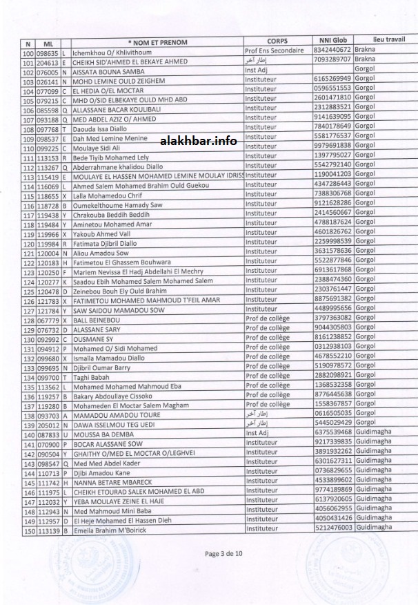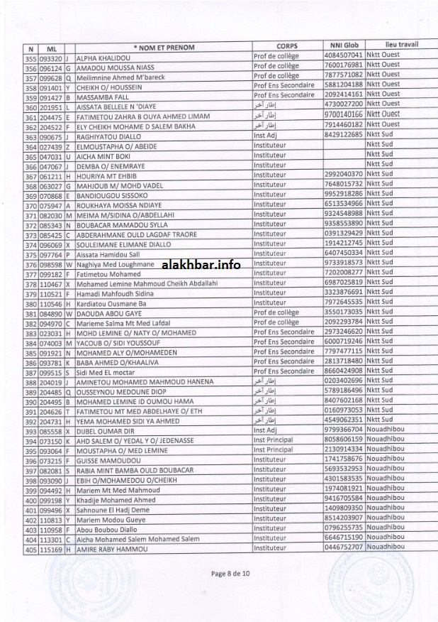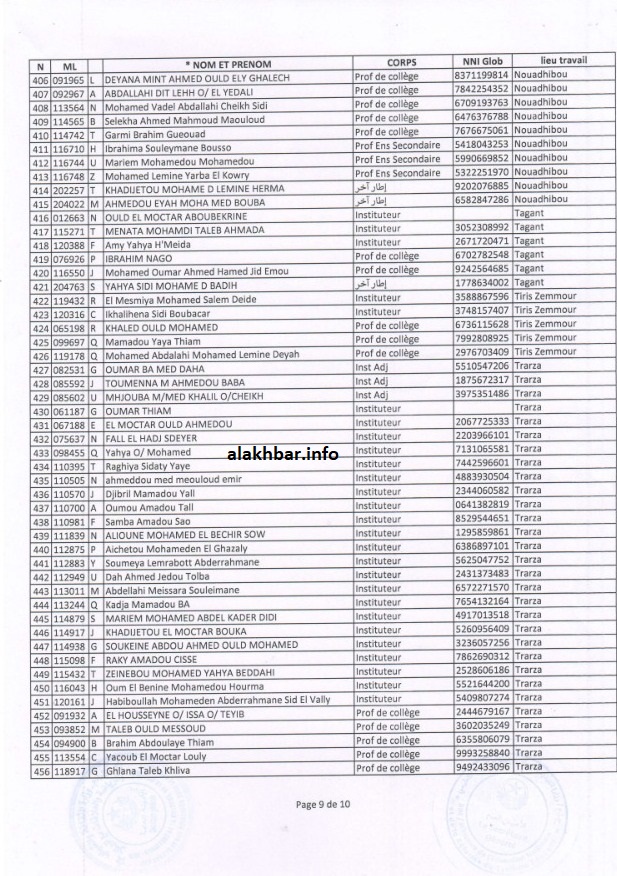 ويتوزع من تم إنذارهم جراء التغيب عن العمل تمهيدا لفصلهم من الوظيفة العمومية إلى: