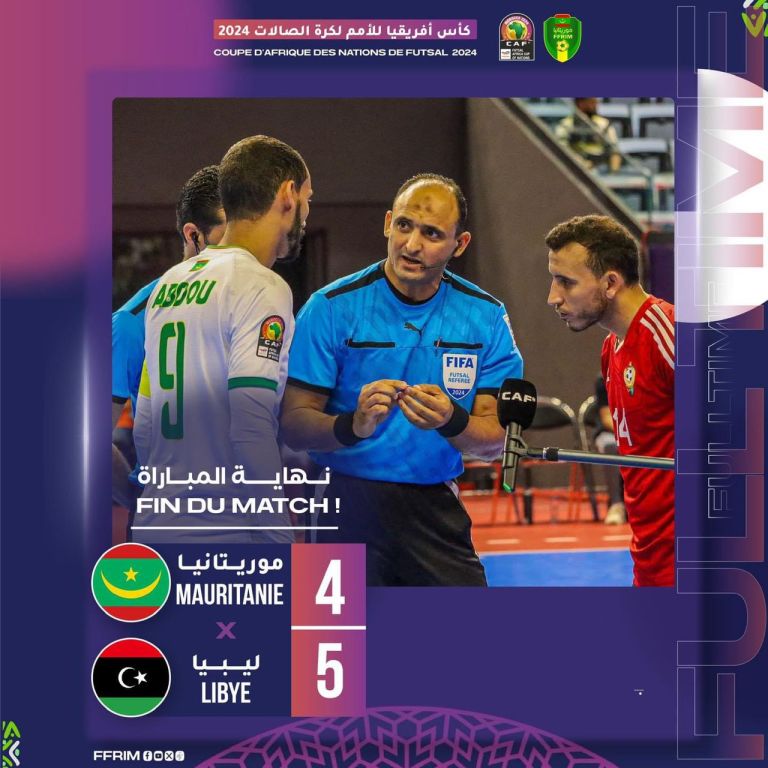 خسر المنتخب الموريتاني لكرة القدم داخل الصالات، ضد نظيره الليبي بنتيجة 5-4، خلال المباراة التي جمعتهما مساء اليوم الأحد.
