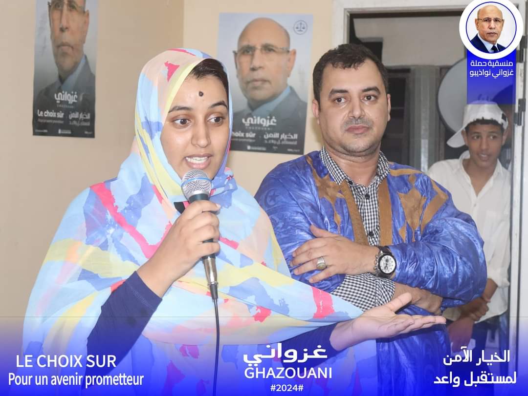 بدورها رئيسة الجيل الثالث املمنين منت أمانة الله بخا اوضحت ان هدف الشباب هو ضمان نجاح المرشح محمد ولد الشيخ الغزواتي لانه الوحيد القادر على ضمان أمن واستقرار البلاد ودمج الشباب في العملية التنموية.