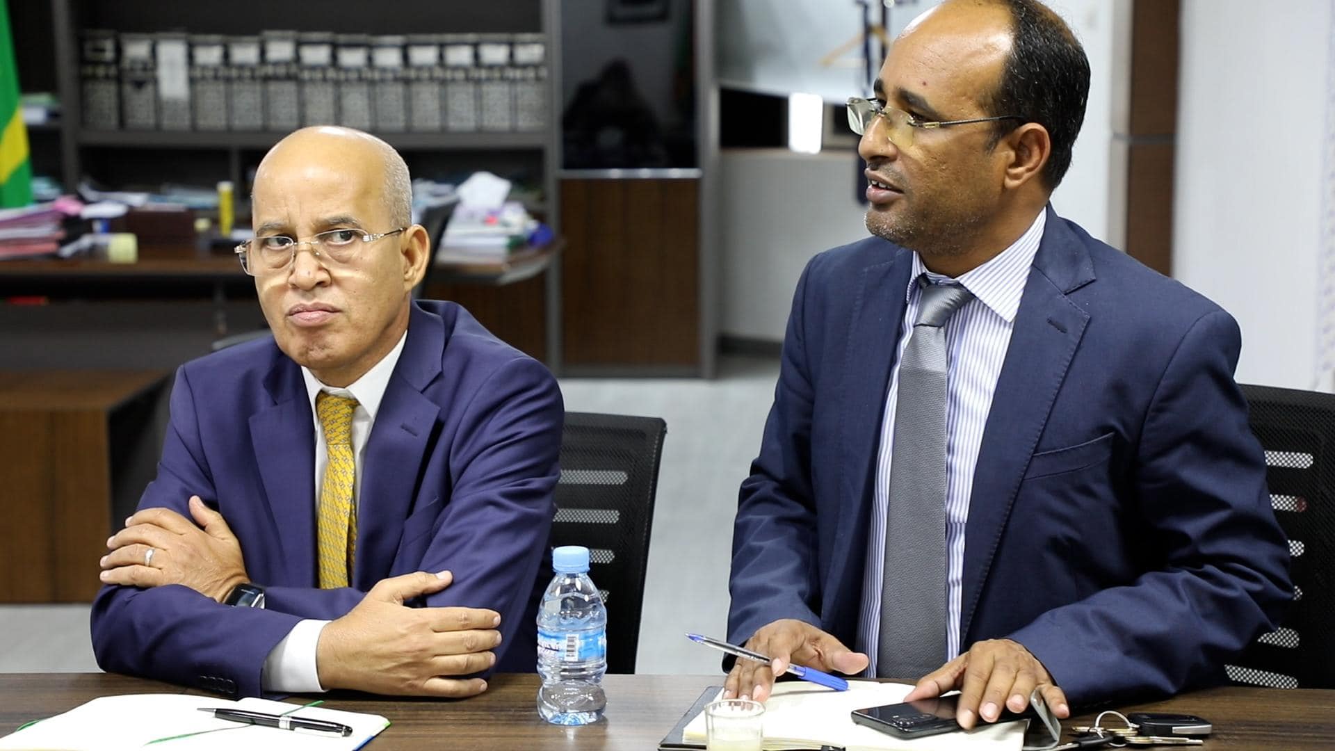 استقبل معالي وزير التجهيز والنقل، السيد أعل ولد الفيرك، اليوم الخميس في مكتبه بنواكشوط، معالي وزير الأشغال العمومية والمنشآت القاعدية الجزائري، السيد لخضر رخروخ.